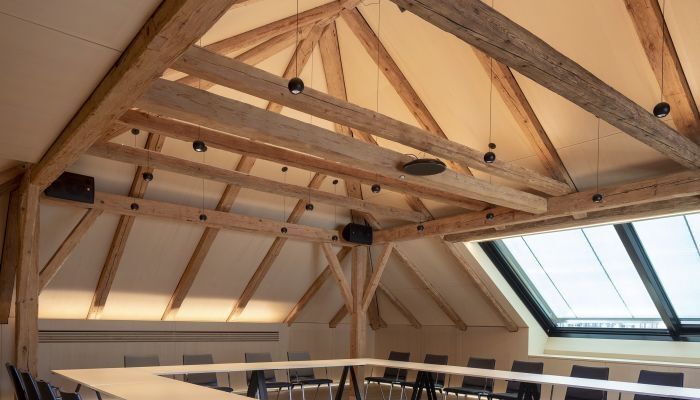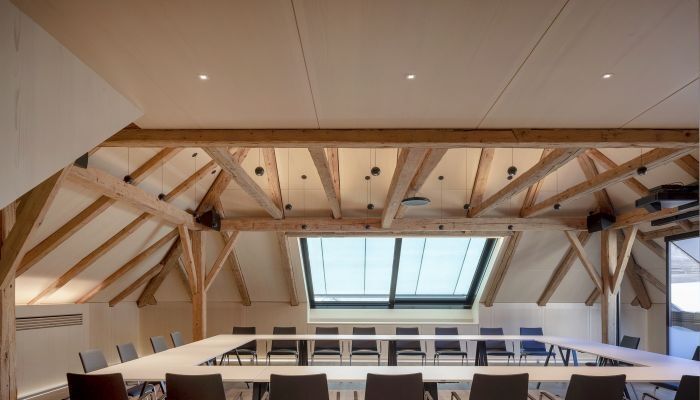 Im Herbst des vergangenen Jahres wurde von der Zehetmayr Raumakustik GmbH das neue Gemeindezentrum inkl. Verabschiedungshalle in Strobl am Wolfgangsee mit Akustikwand- und Deckenverkleidungen ausgestattet. Die von den Neururer Architekten gewählte Mikroperforation lässt den Charakter der Naturholzplatten voll zur Geltung kommen. Der schlichte hochwertige Innenausbau fügt sich ideal in den Altbestand ein. Ebenfalls hohe Handwerkskunst sind die schrägen Akustikverkleidung mit integriertem Licht in der Verabschiedungshalle des Mehrzweckbaus.