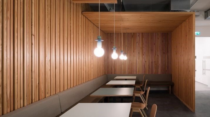 Schlichte Wand- und Deckenverkleidungen mit modernen Hölzern