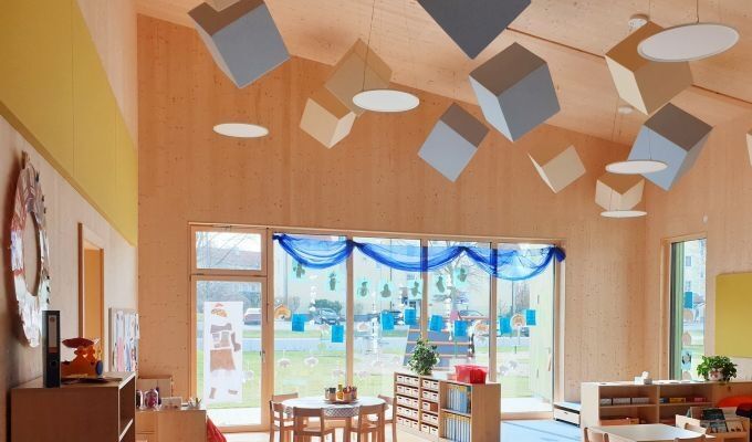 Gruppenräume und Schulklassen mit guter Akustik haben ein hohes Maß an Sprachverständlichkeit und steigern die Aufmerksamkeit und Lernfähigkeit der Kinder. Der Kopf ist frei für kreatives Denken und Handeln.