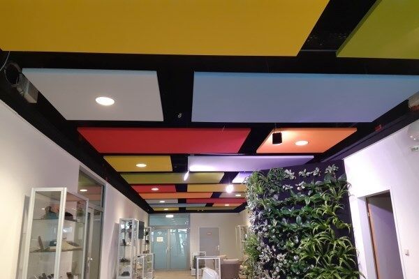 Wand- und Deckenelemente mit dem Rastermaß 550mm und ausgewählte Stoffe sowie Motive bilden die Basis für ein Absorberprogramm, welches schnell montiert und hoch effizient ist.