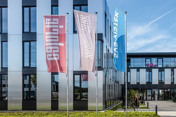 Im ZIEGLER Online Shop besteht die Möglichkeit, Fahnenmasten nach individuellen Anforderungen zu bestellen. Unterschiedliche Höhen, von sechs bis zwölf Meter, mit Ausleger oder ohne, und sogar in Kombination mit Licht. Diese Fahnenmasten können dadurch auch als Lichtstele oder Laterne in das architektonische Gesamtkonzept integriert werden.